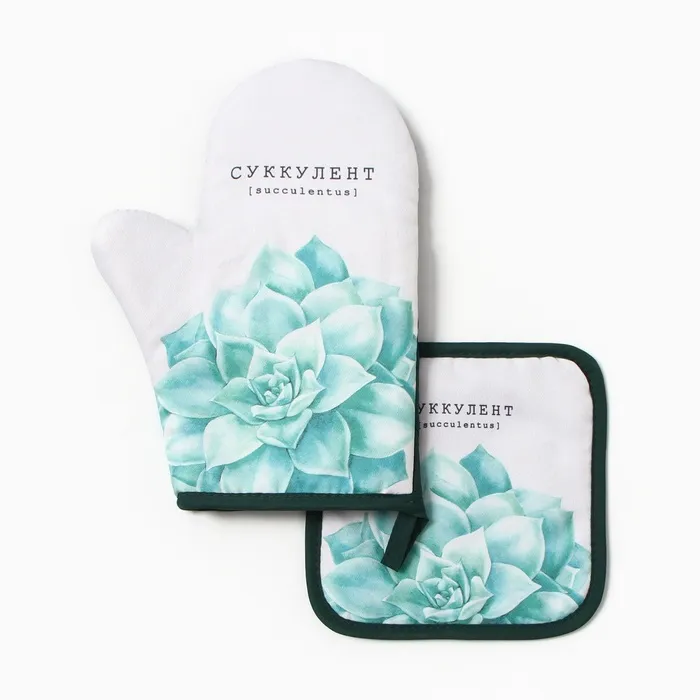 Набор кухонный "Суккулент" варежка-прихватка 20х27см, прихватка 17х17см 100% п/э