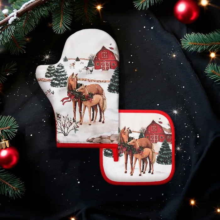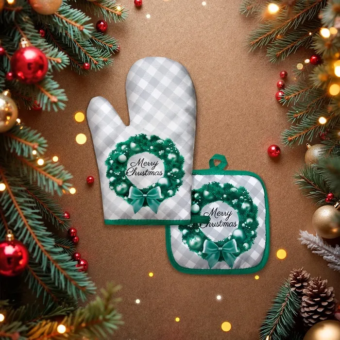 Кухонный набор 2 прихваткиДоляна Christmas прихватка 17*17см, Варежка-прихватка новогодняя 26*16 см,100%п/э