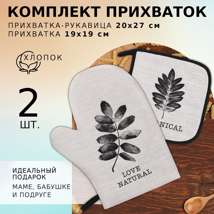 Кухонный набор Этель "Impression": варежка 20х27 см, прихватка 19х19 см, 100% хлопок, 250 г/м2