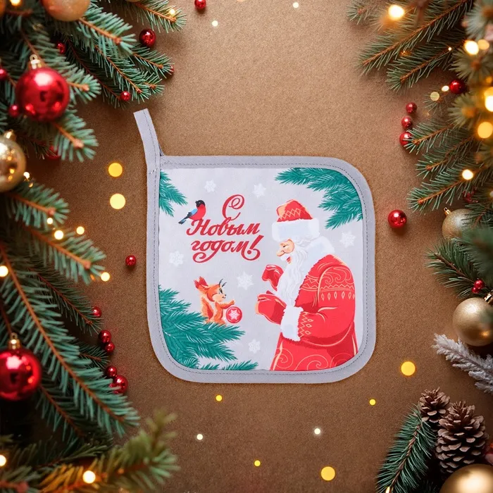 Прихватка Доляна "С новым годом" 17х17 см, 35% хл, 65% пэ, ватин 250 г/м2
