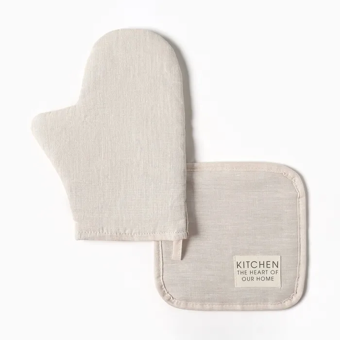 Набор кух. Этель "Magnifica" : варежка 20х28 см, прихватка 19х19 см, лен 100%, 180 гр/м2