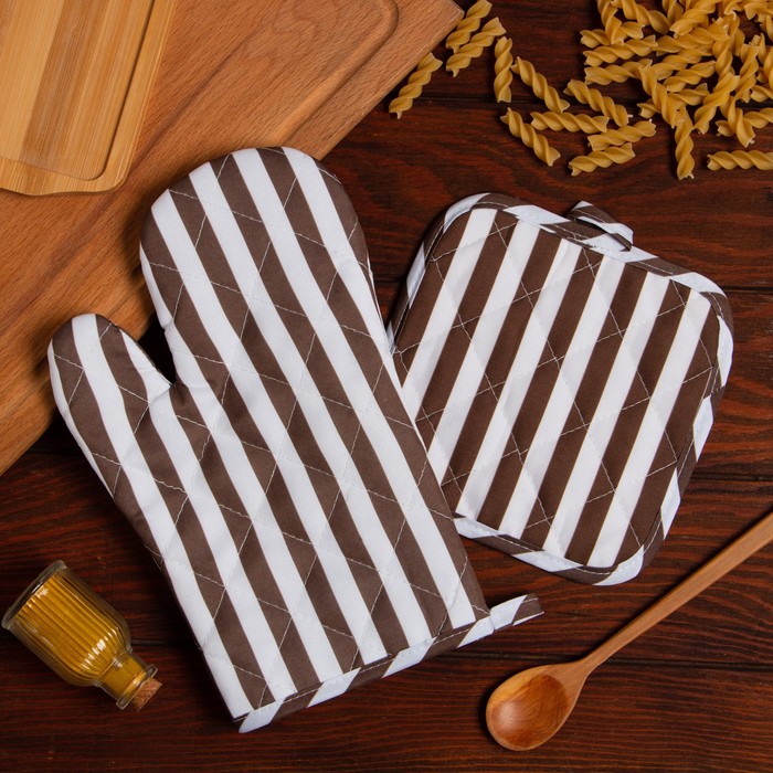 Кухонный набор Доляна цвет кофе прихватка 17х17 см, варежка 26х16 см, 100% п/э