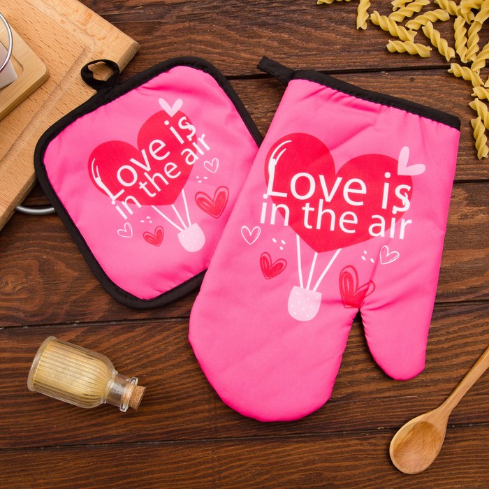 Кухонный набор (2 предмета) Этель LoveLife Love, прихватка 17х17 см, рукавичка 26х16 см, 100% п/э