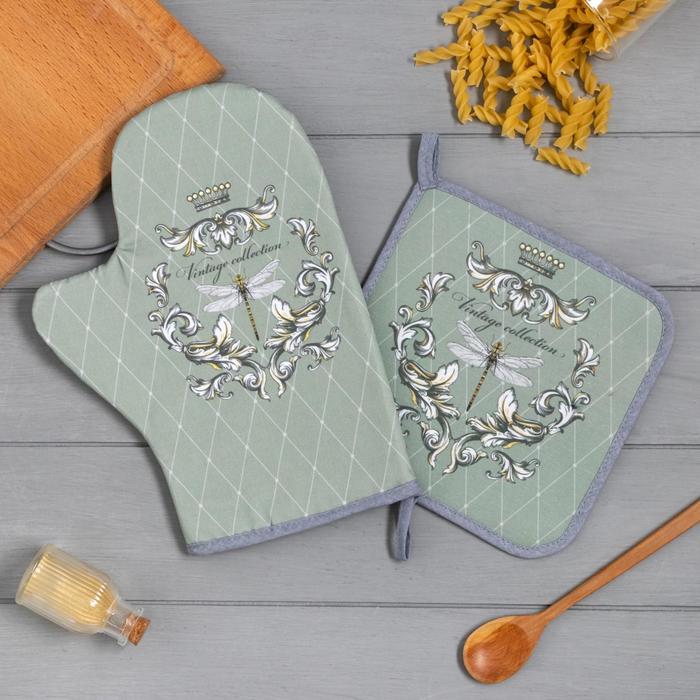 Набор кухонный «Vintage collection» варежка-прихватка 20х28см, прихватка 19х19см,100% хл