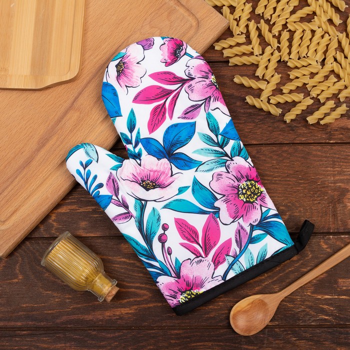 Варежка-прихватка "Flower mood" 20х28см,саржа, 100% хлопок, ватин 250г/м2