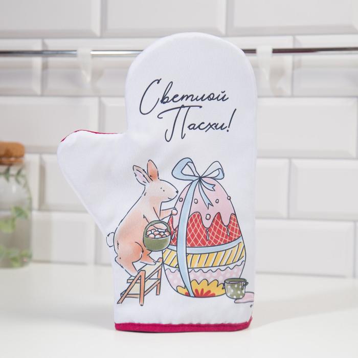 Варежка-прихватка Доляна "Пасха" 20х28 см, 35% хлопок, 65% пэ, ватин 250 г/м2