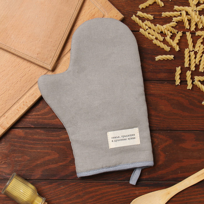 Варежка-прихватка «Доляна. Душевная кухня», серый, 20×28 см, рогожка, 100% хлопок