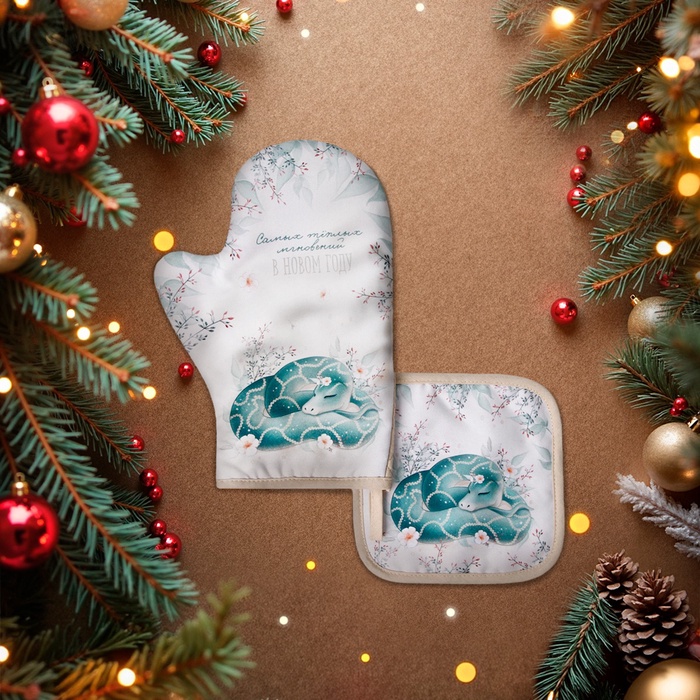 Набор кухонный «Доляна. Тёплых мгновений»: прихватка 17×17 см, варежка-прихватка 20×28 см, 35% хлопок