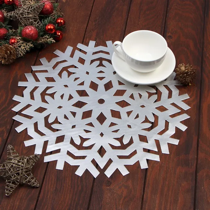 Салфетка новогодняя сервировочная Доляна Снежинка, цвет серебро, d 38 см