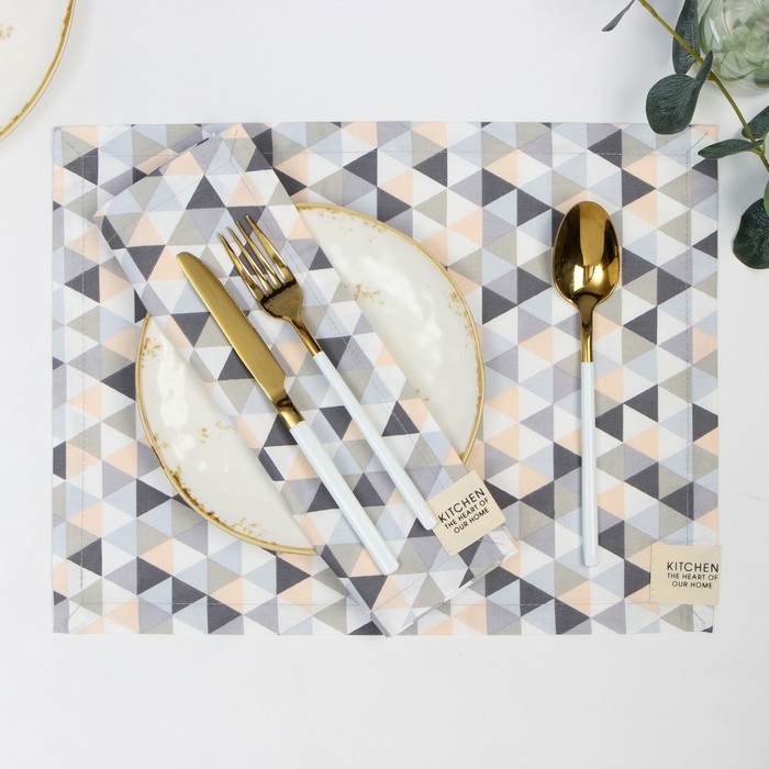 Набор салфеток Этель "Треугольники" 30х40 см - 2 шт, 80% хл, 20% пэ, сатин 110 г/м2