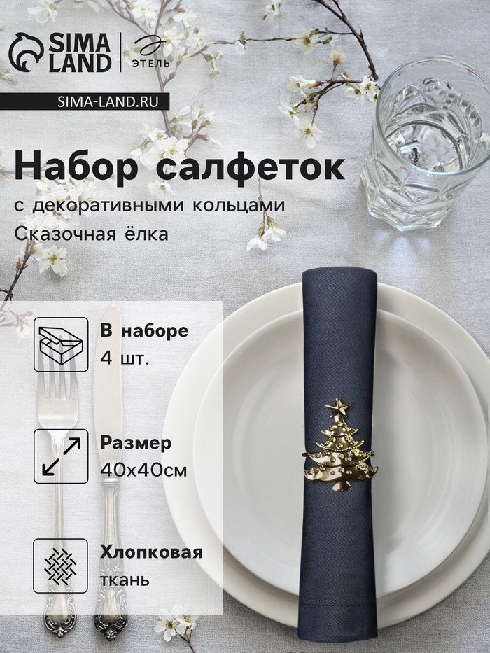 Набор сервировочных салфеток с декоративными кольцами Этель Сказочная ёлка 40х40 см - 4 шт, 100% хл.