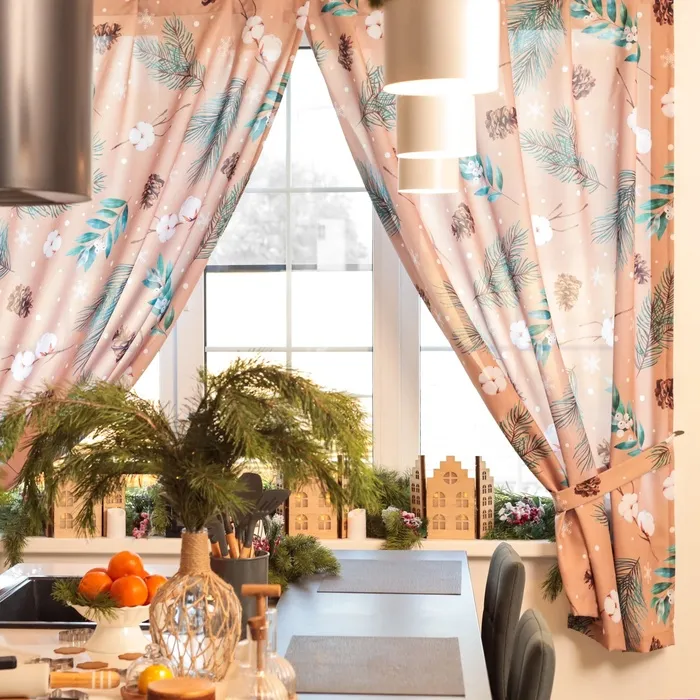 Комплект штор для кухни с подхватами «Этель» Fir branches, 145×180 см - 2 шт., габардин
