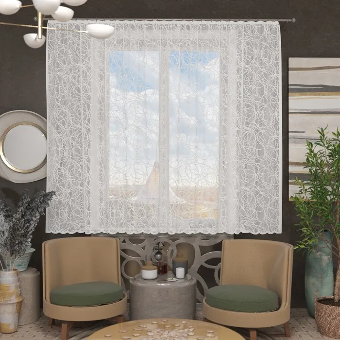 Тюль на кухню без шторной ленты, 170х165 см, 100% полиэстер