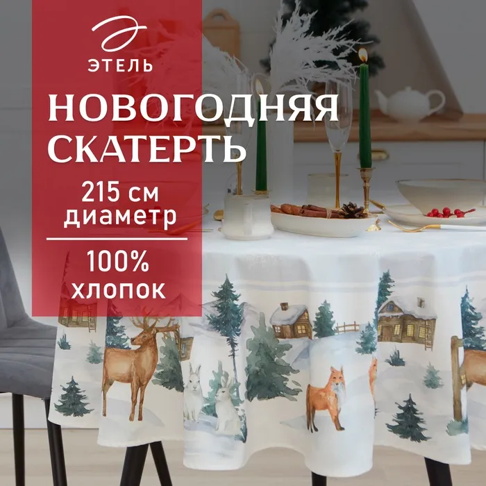 Скатерть новогодняя "Этель" "Forest animals" d=215 +/- 3см с ГМВО, 100%хл, саржа 190 гр/м2