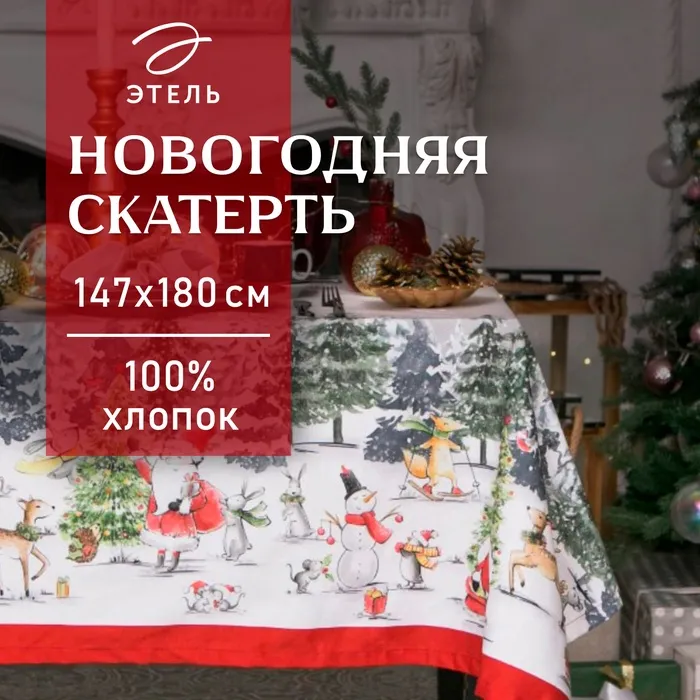 Скатерть новогодняя "Этель" Праздник в лесу 147х180 см,100% хл,саржа 190гр/м2 с ГМВО