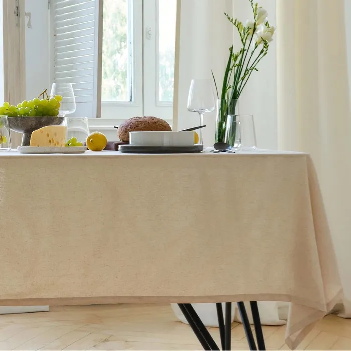 Скатерть Этель ECO, цвет молочный, 136х180/+-6 см, 70% хл, 30% лён, 190 г/м2