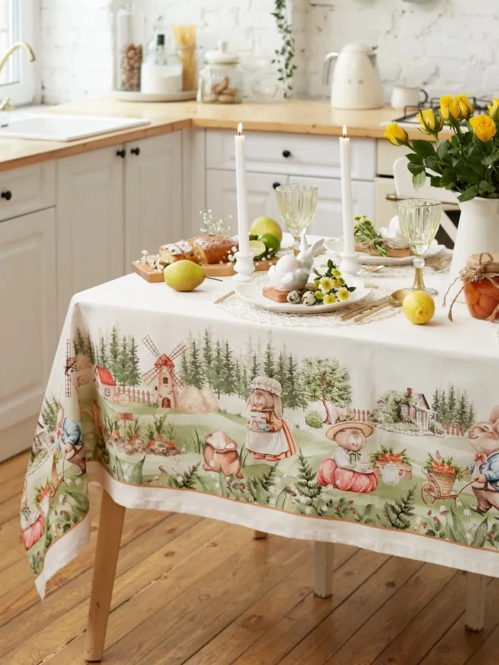 Скатерть "Этель" Кроличья ферма 149х180см, 100% хл, саржа 190 г/м2