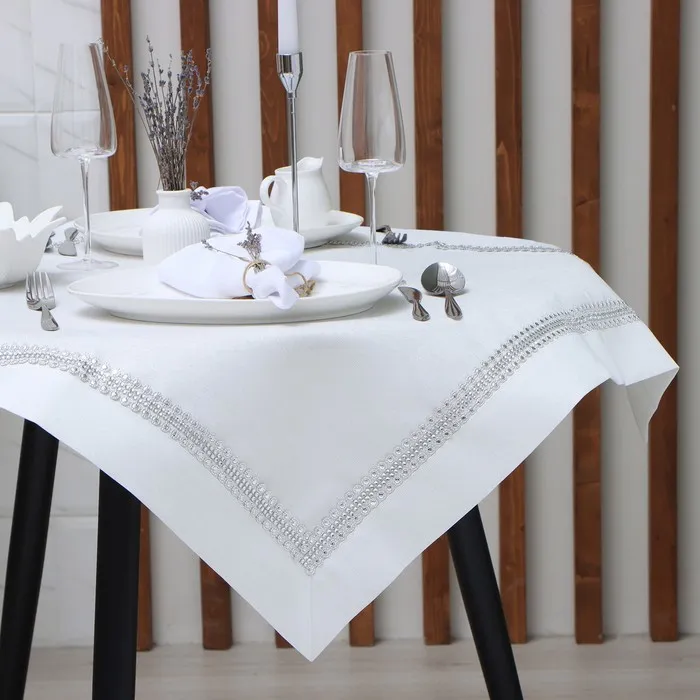 Скатерть Этель со стразами, 85 х 85 ±5 см, цвет белый, п/э