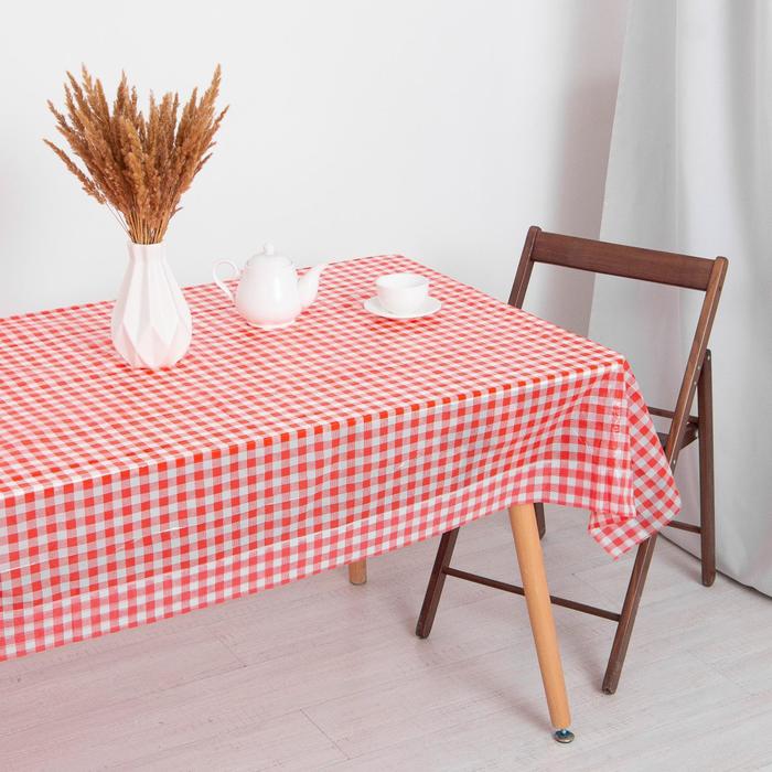 Скатерть для дачи Клеточка цв. красный 137*274 см