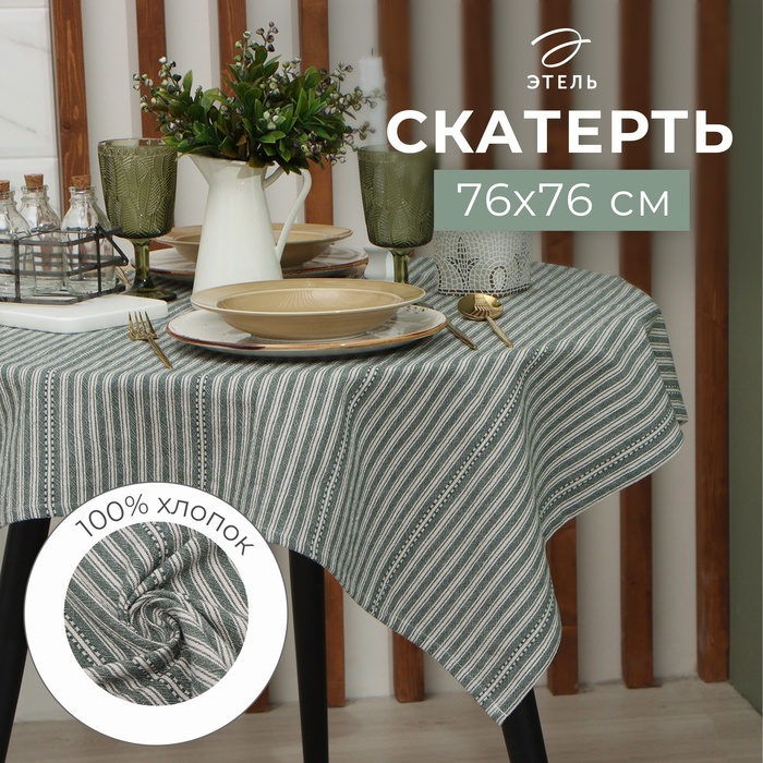 Скатерть Этель "Полосы", цв. зелёный, 76х76 см, 100% хл