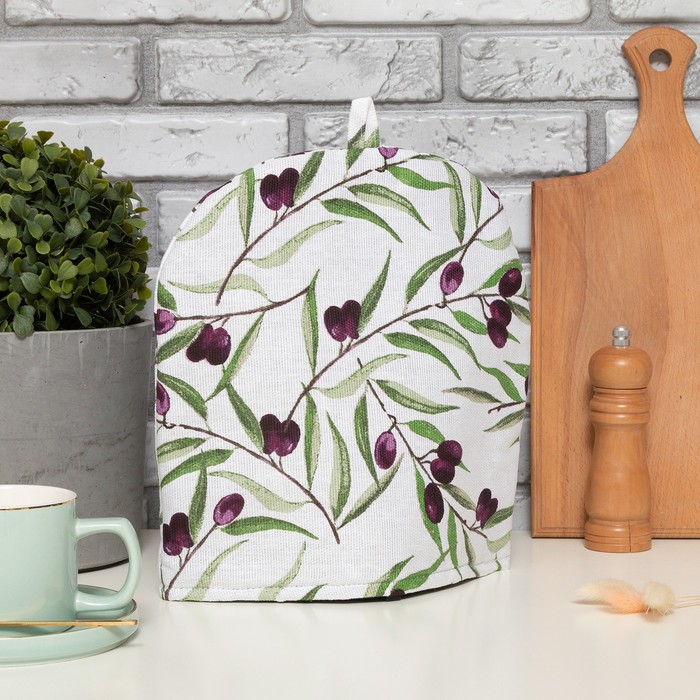Грелка на чайник Доляна Olives 28×28 см, 100% хлопок, рогожка 164 г/м²
