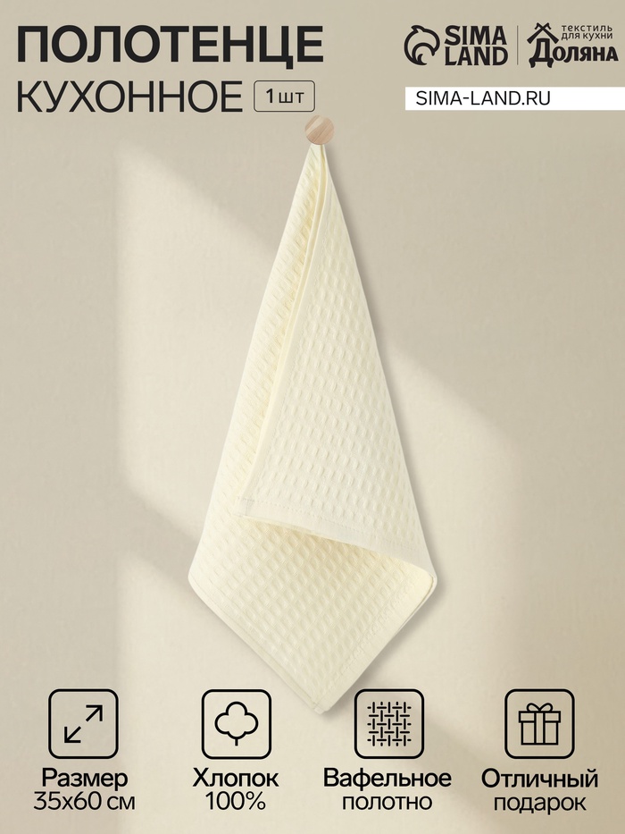 Кухонное полотенце «Доляна», белое, 35×60 см, 100% хлопок, крупная вафля 220 г/м²