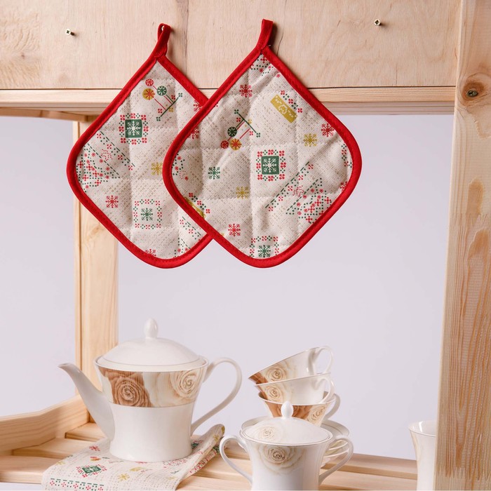 Набор прихваток Праздник 9266-2 18х18 см 2шт, красный, рогожка, хл100%