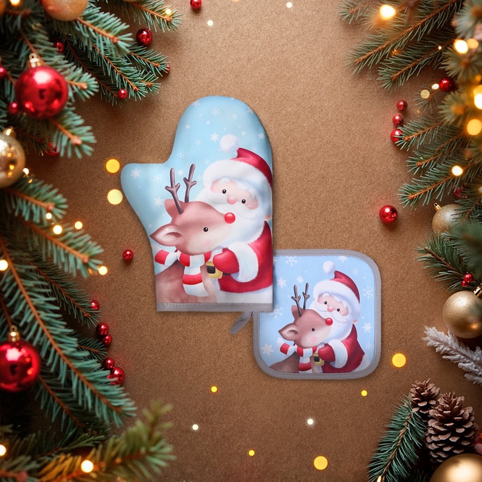 Набор кухонный «Доляна. Волшебство»: варежка 20×28 см, прихватка 17×17 см, 35% хлопок, 65% п/э
