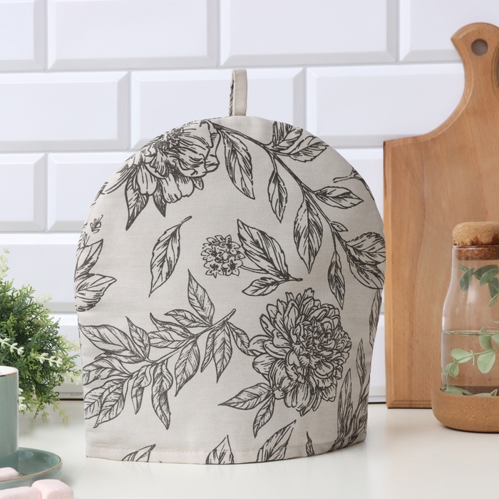 Грелка на чайник Этель Black flowers 28×28 см, 100% хлопок, 190 г/м²
