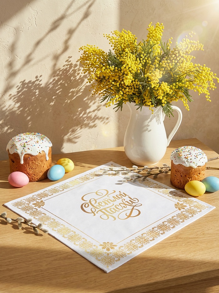Салфетка пасхальная на стол «Светлой Пасхи» 65×65 см
