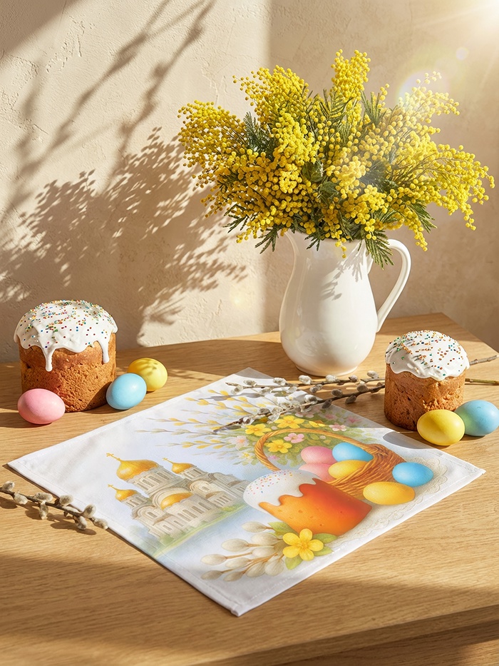 Салфетка пасхальная на стол «Пасхальное настроение» 65×65 см