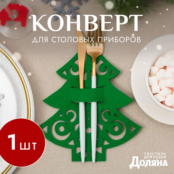 Конверт для столовых предметов «Ёлочка», 17×22 см, 100% п/э, фетр, зелёный
