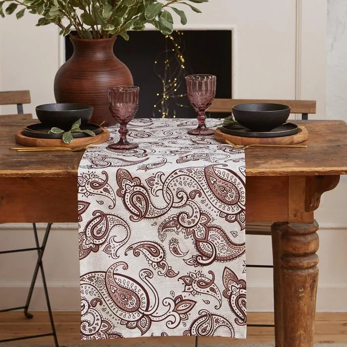 Дорожка на стол Этель «Восточные узоры» 40×149 см, 100% хлопок, саржа 190 г/м², белая/коричневая