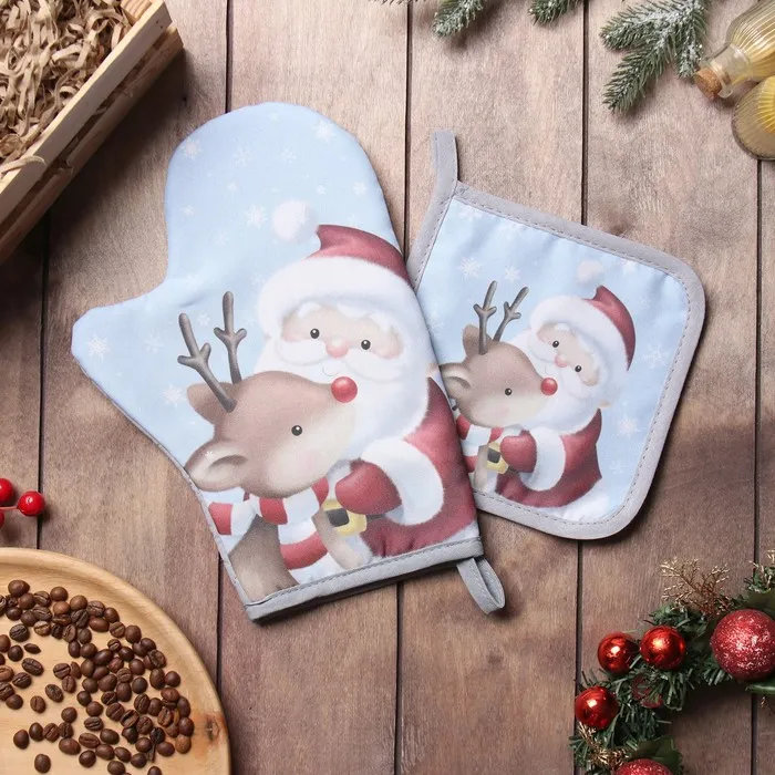 Набор кухонный Доляна "Волшебство": варежка 20х28 см, прихватка 17х17 см, 35% хл, 65% пэ