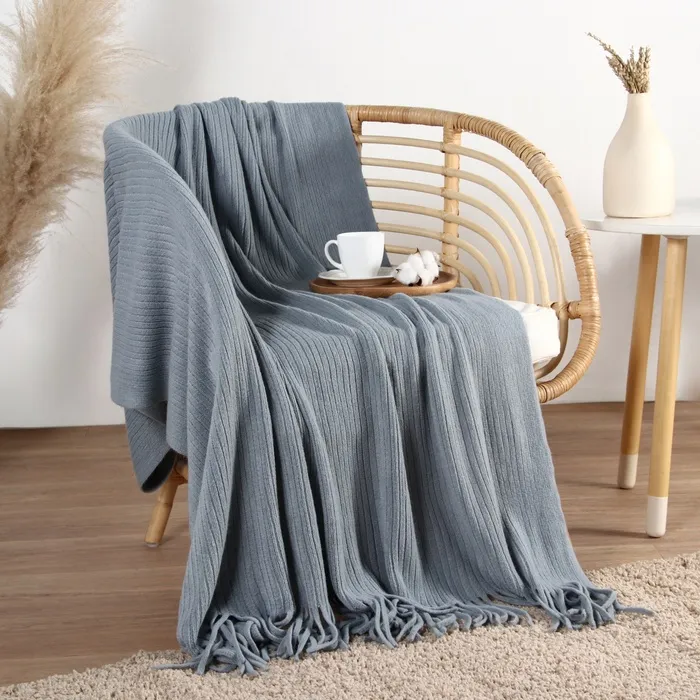 Плед Валенсия 140х200см, 03/BABBLE, бел/дым/т.сер, хл 50%, пэ 30%, пан 20%