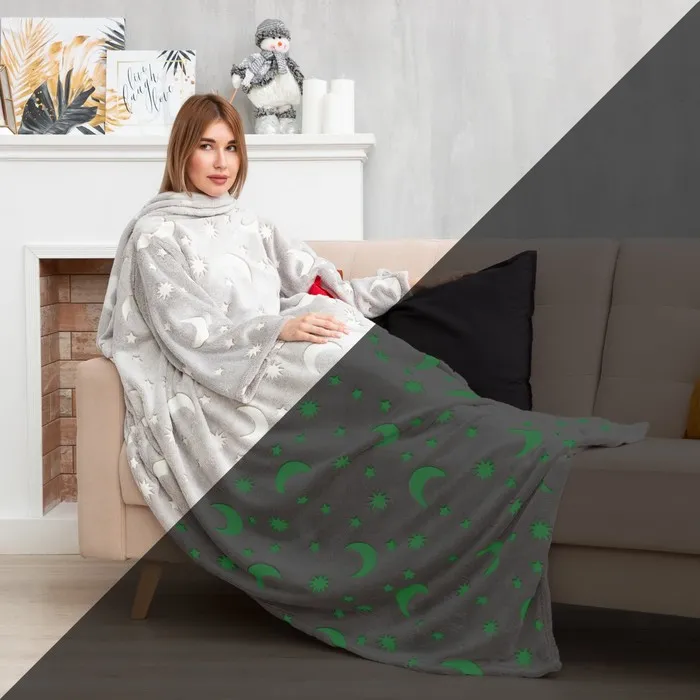 Плед с рукавами светящийся в темноте Этель "Луна" 150*200, 100% п/э 220 гр/м2