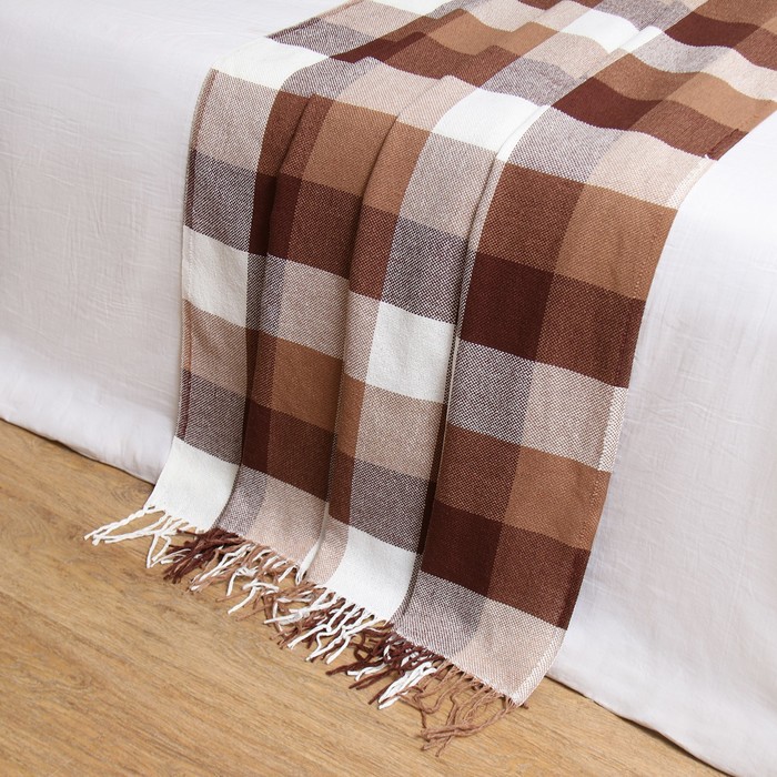 Плед Пикник 140х200см, белый/бежевый/коричневый, хлопок 20%, пан 40%, полиэстер 40%