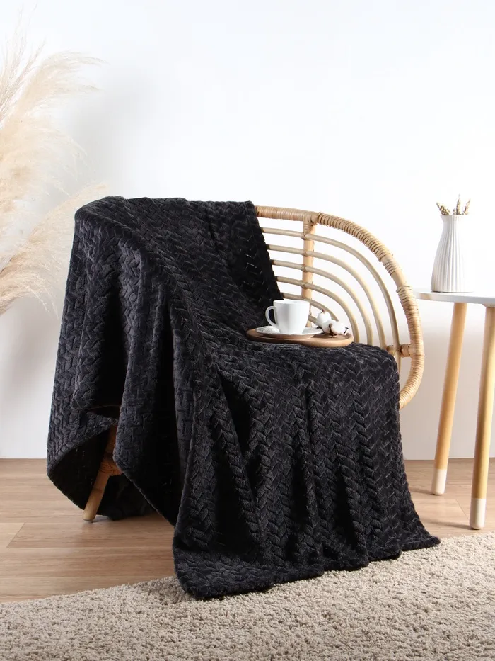 Плед Этель Zig-zag, темно-серый, 180×200 см,100% п/э, корал-флис 300 г/м²