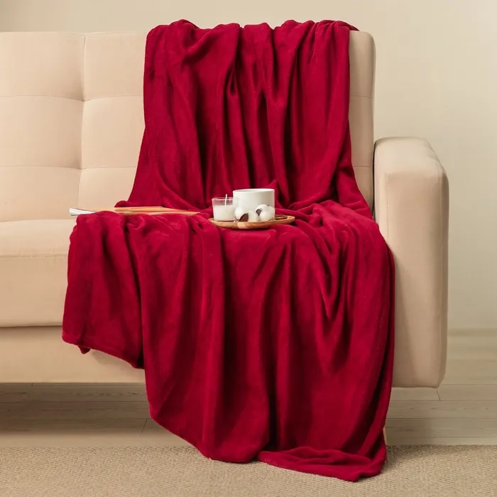 Плед Этель 200*220 см, цв. бордовый, 100% п/э, корал-флис , 220 гр/м2
