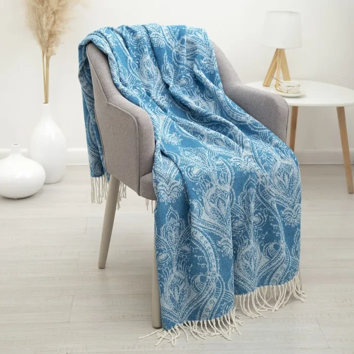 Плед "Валенсия", 140х200, цвет тёмно-бирюзовый, Состав: 50% хлопок, 30% полиэстер, 20% ПАН