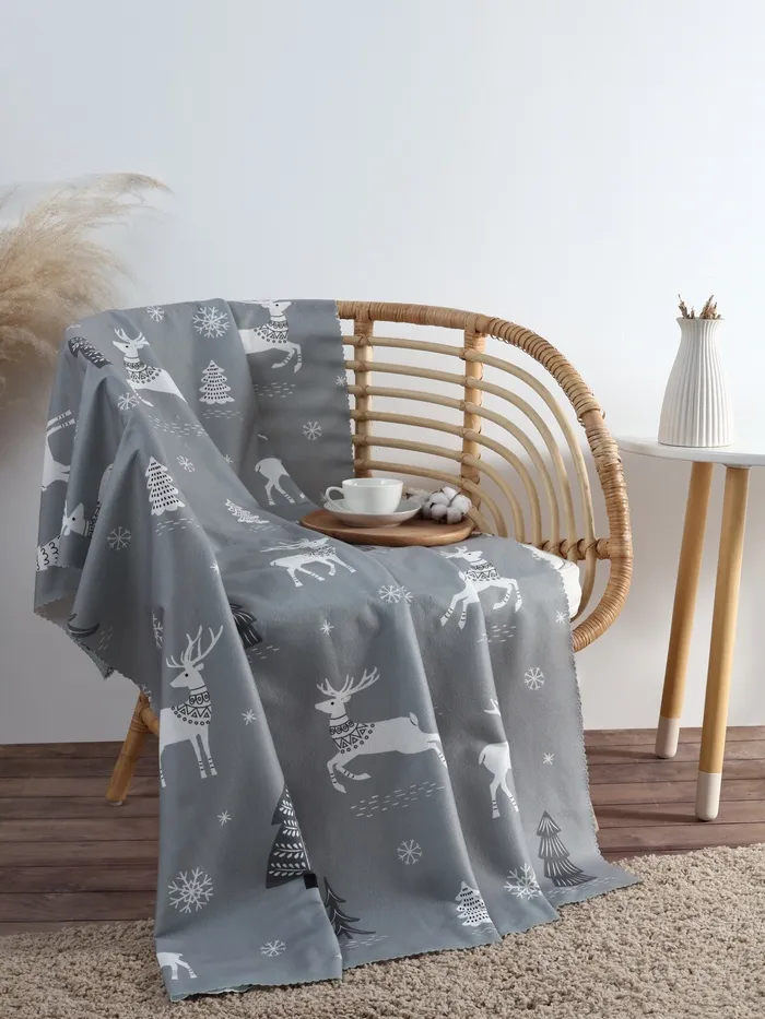 Плед Этель "Зимний лес" 100х150см, цвет серый, флис