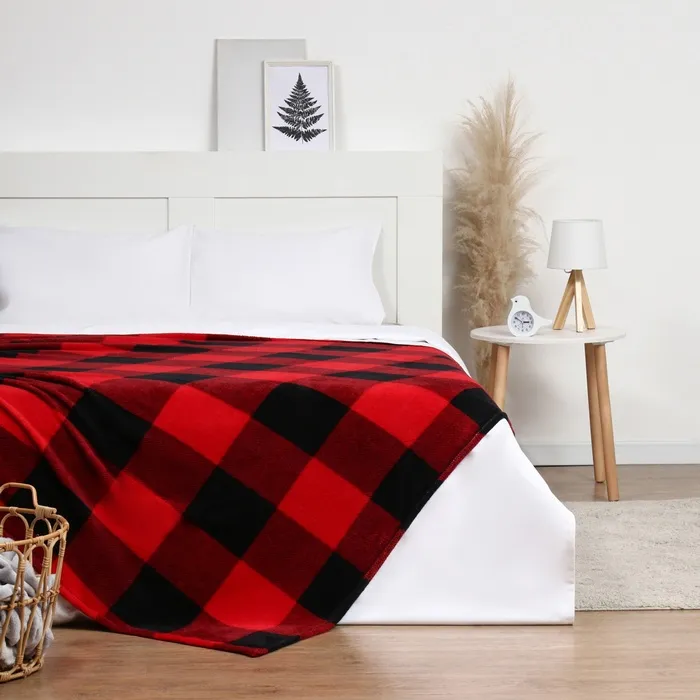 Плед Этель "Клетка черно-красн" 200*220 см,100% п/э, корал-флис 220 гр/м2