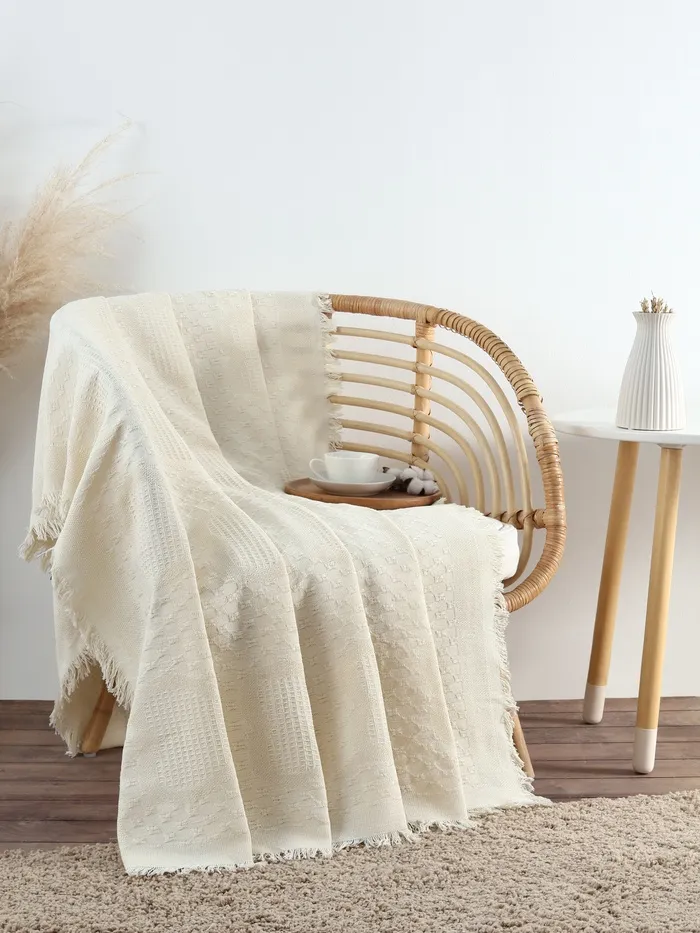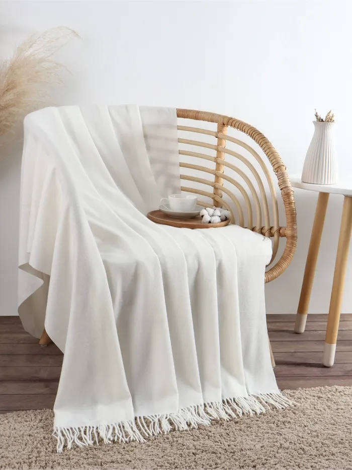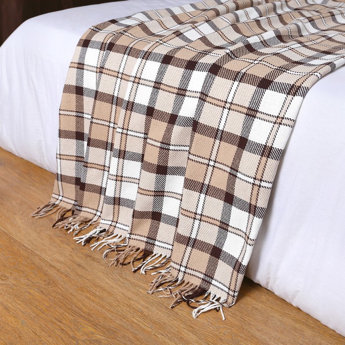 Плед с бахромой Vladi «Валенсия», 140×200 см, белый, бежевый