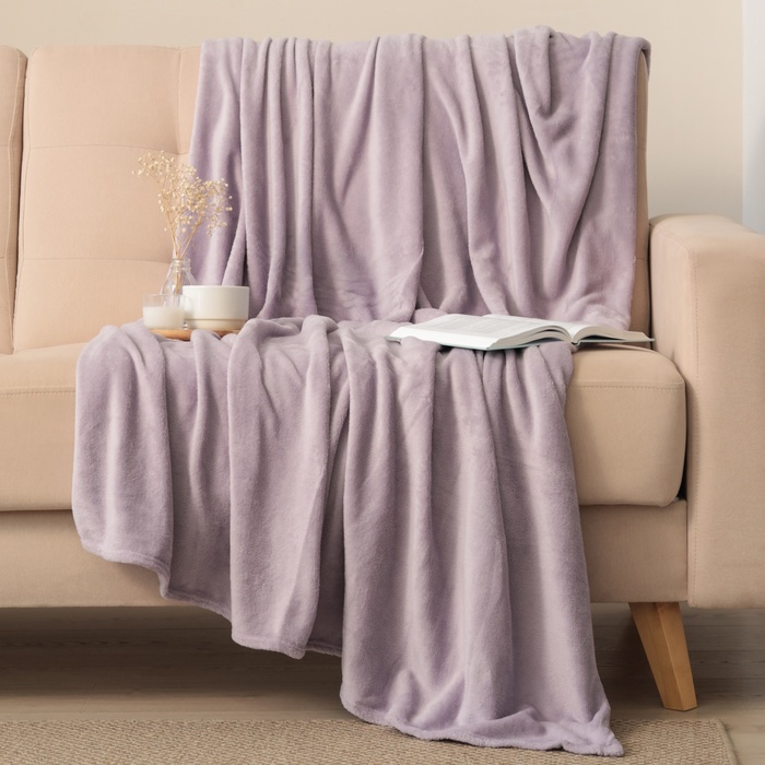 Плед «Этель», 200×220 см, корал-флис, сиреневый