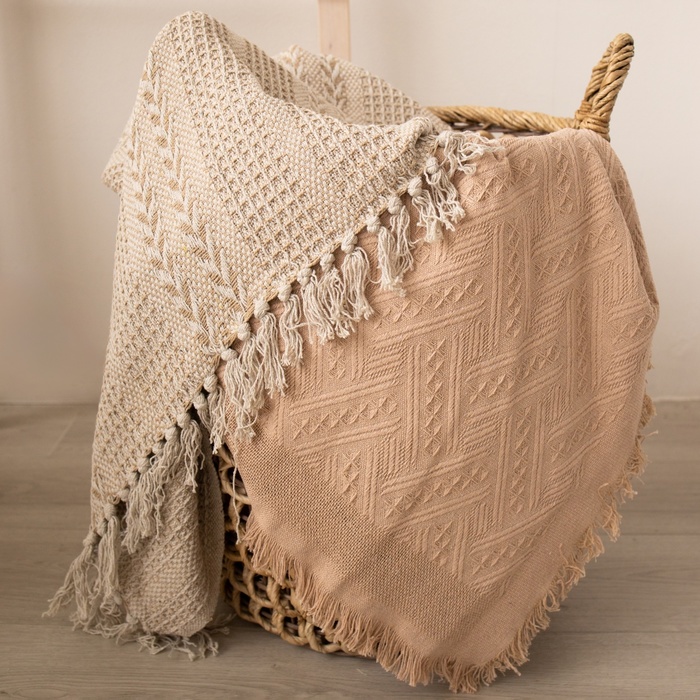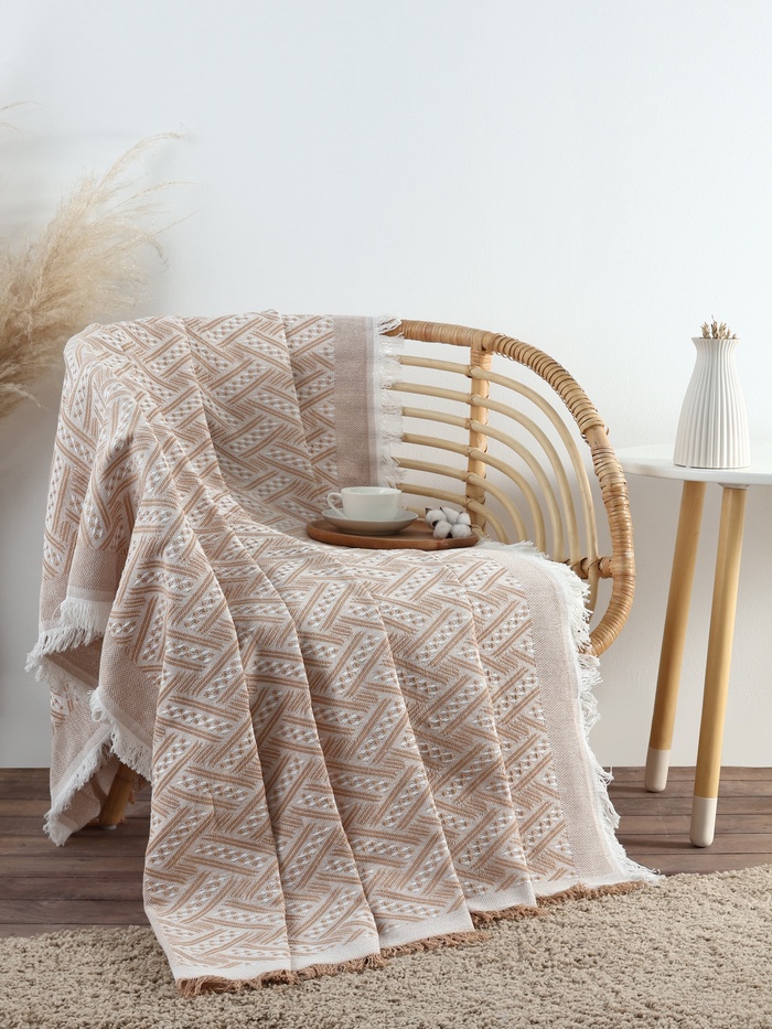 Плед с бахромой «Этель» Home, 130×180 см, бежевый, жаккард