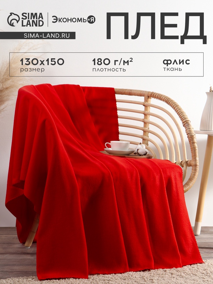 Плед флисовый «Экономь и Я», 150×130 см, 180 г/м², красный