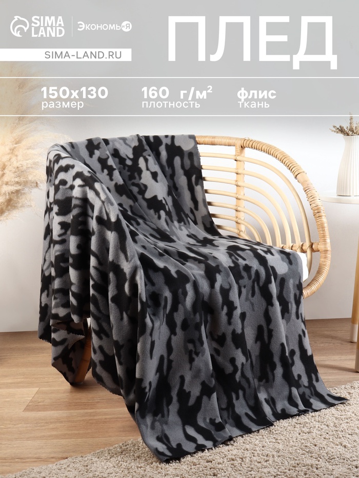 Плед флисовый «Экономь и Я. Камуфляж», 150×130 см, плотность 160 г/м²
