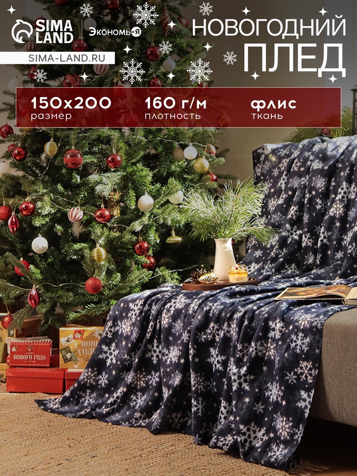 Плед флисовый новогодний «Экономь и Я. Снегопад», 150×200 см