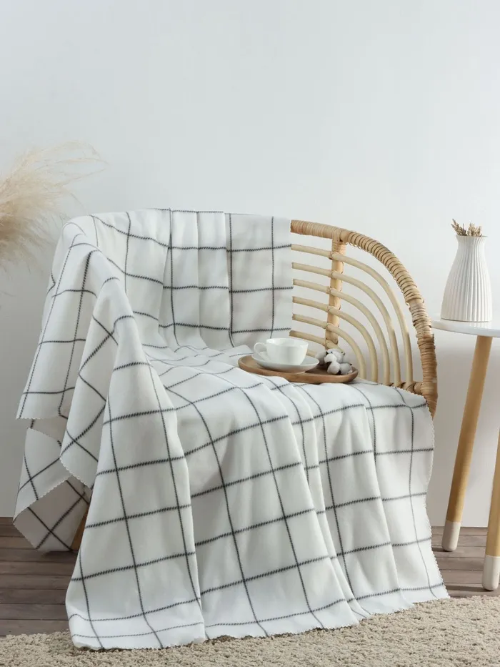 Плед Экономь и Я "Клетка" цв.белый, 150*180 см, пл.160 г/м2, 100% п/э, флис