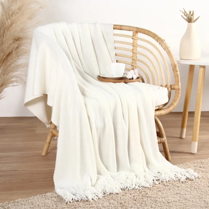 Плед Этель Morocco 130*170 см, с бахромой, цв.белый, 100% акрил